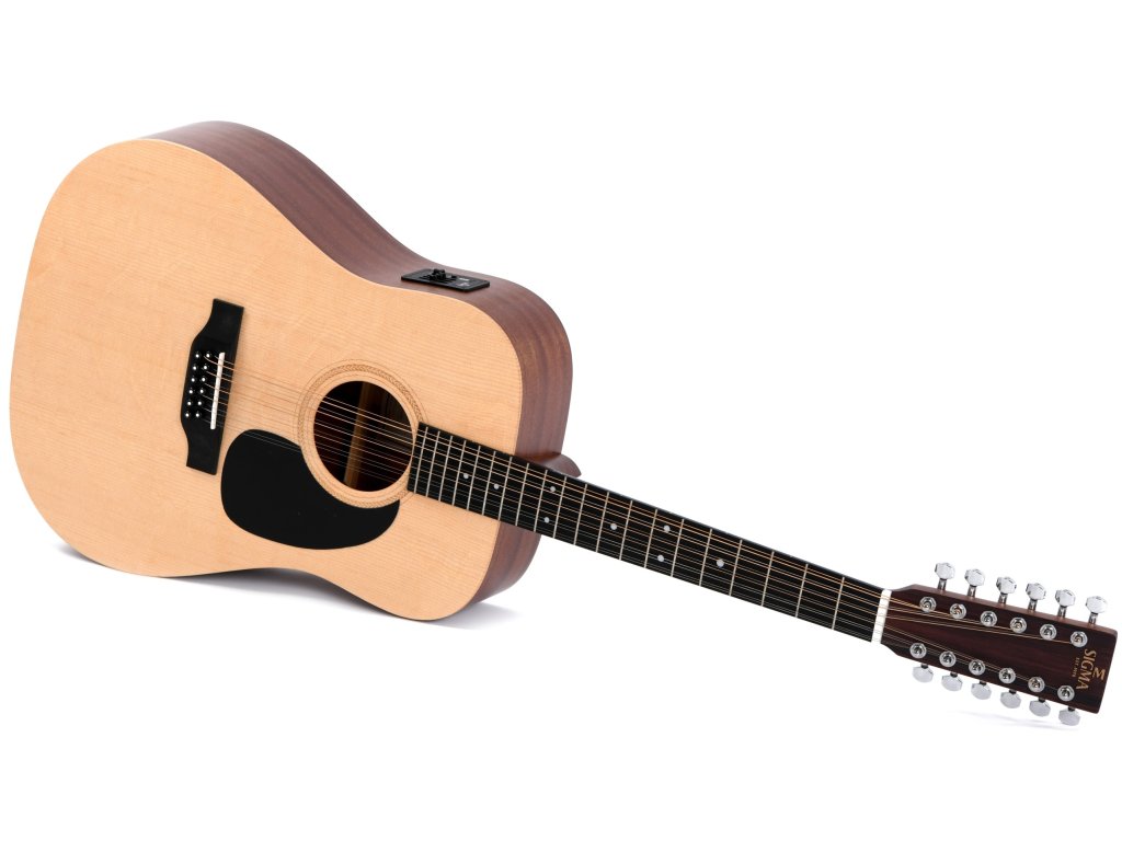 Model DM12E je dvanáctistrunnou variantou úspěšného bestselleru Sigma Guitars - modelu DME. Jedná se o standardní dreadnought bez výřezu, provedený v nejekonomičtější variantě, tedy bez ozdob, bez lemování a pouze s tenčí vrstvou matného laku.